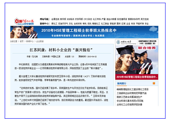 中國化工報、中國建筑新聞網(wǎng)——江蘇同康:材料小企業(yè)的“新興情結(jié)”