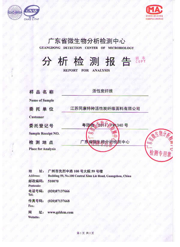 江蘇同康特種活性炭纖維公司生產的活性炭纖維居室凈味寶、汽車凈味寶獲得國家專利,特別適用于新裝居室、汽車或及新置家具里各種有害物質,尤其是致癌物質、芳香族類的化合物(如苯類、醛類)的去除,使空氣潔凈清新,有利人體身心健康。該產品經中國室內裝飾協會環境監測中心檢測對甲醛、苯、甲苯、有機揮發物(TVOC)的消除有明顯作用。