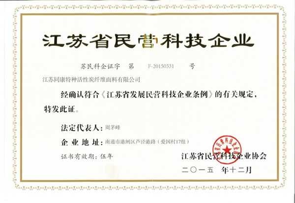 同康公司喜獲江蘇省民營科技企業稱號
